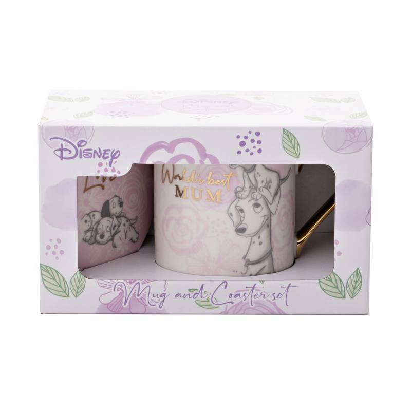 The mug has the words World's Best Mum and a 101 Dalmatians design.