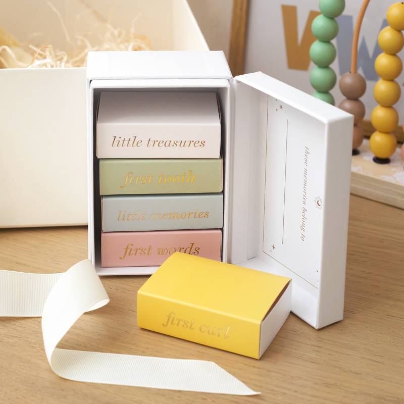 Memories Box – A delicate keepsake storage box with compartments for precious firsts, including: