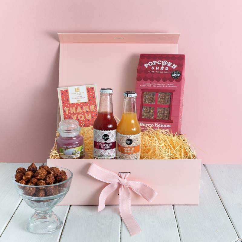Inside the high quality pink gift box you will find a hand picked selection of luxury gifts.