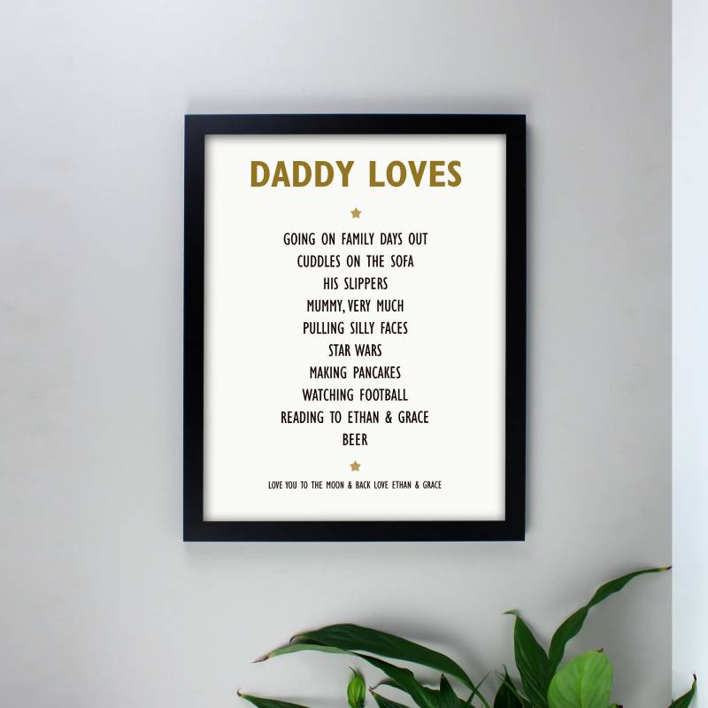 Personalise this List of Love framed print with a name/role of up to 20 characters, 10 list items of up to 30 characters each and a message at the bottom of up to 50 characters.