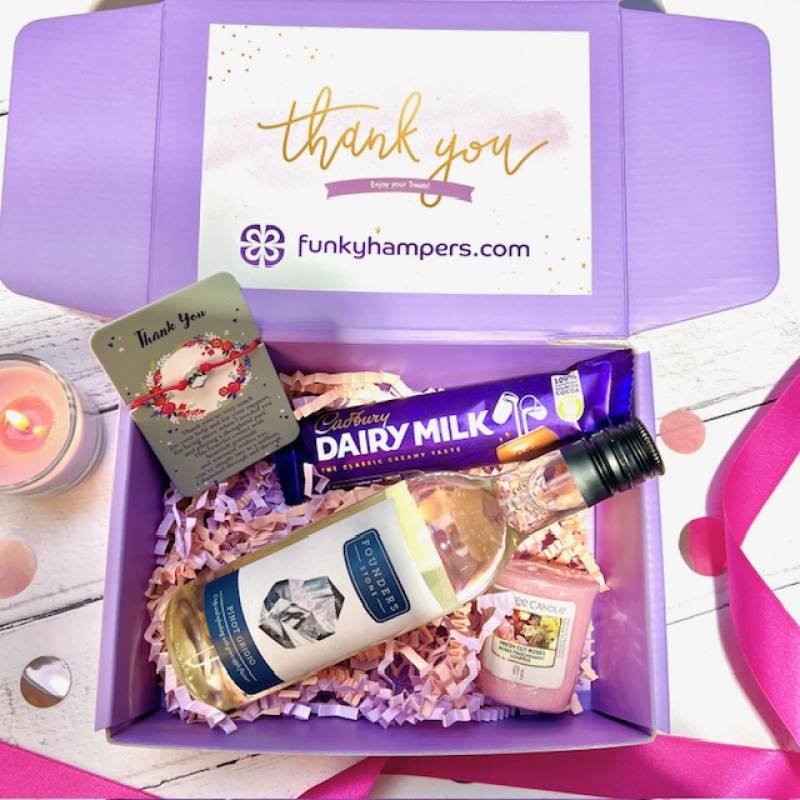 Presented inside a gift box with a thank you theme, we have curated a beautiful selection of treats.